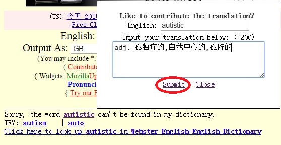 How to contribute your efforts towards the unknown wordsWith new words being introduced from day to day, we would like to keep pace. Recently we have implemented new features to accept the translation input from our dear users. Whenever your search result fails you, you have chance to help us to add the translation for the unknown word.